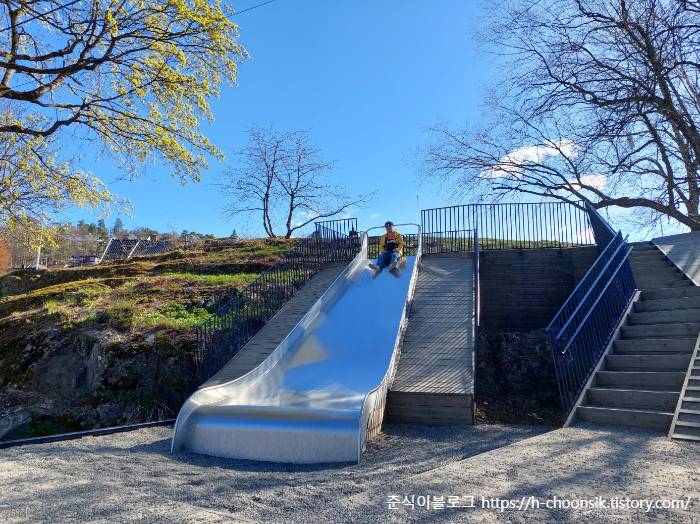 미끄럼틀이 생각보다 높아서 무서웠다