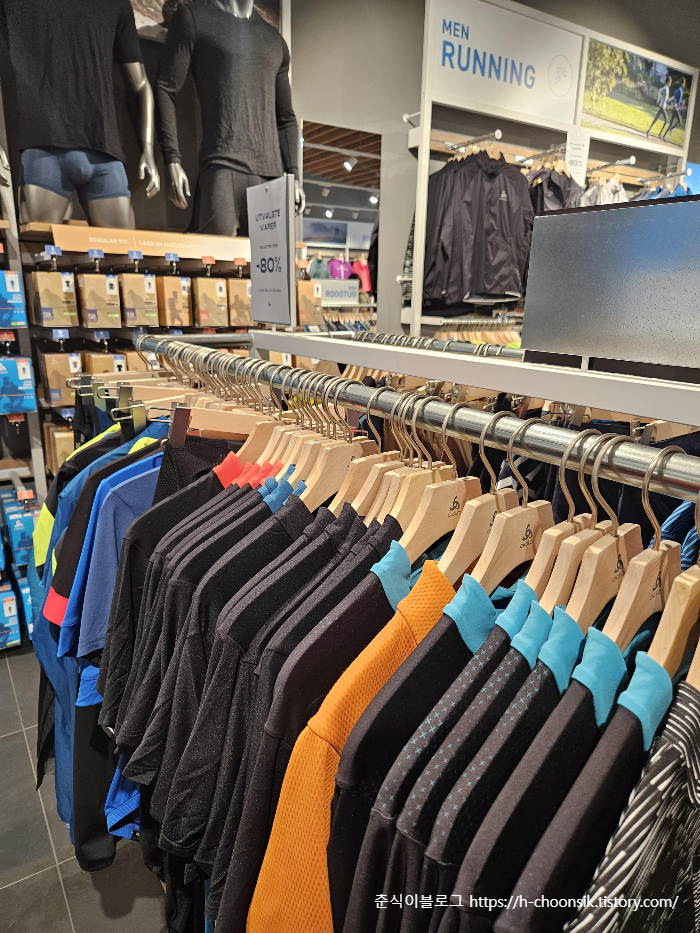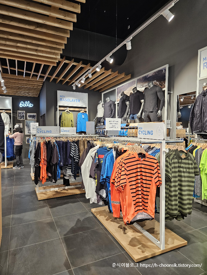 odlo 매장에 사이클의류가 다양하게 있었다.
