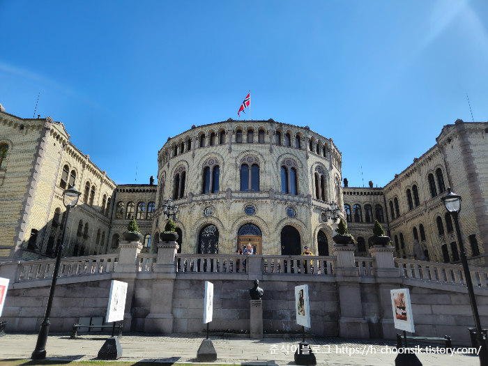 오슬로중앙역을 지나서 국회의사당 근처 정류장에서 내렸다.
