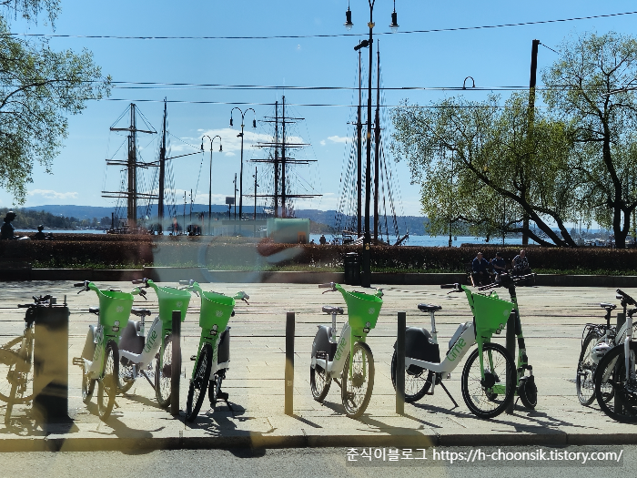 카페 앞에는 노르웨이 버전 따릉이 ㅋㅋㅋㅋ